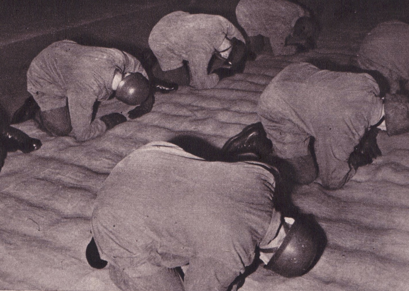 The qualification phase to become a paratrooper consisted of 6 jumps. The first would be a t height of around 200 metres, the next two at 150 metres, but in a stick of six trainees. Their fourth jump would be from the same height, but at dusk or dawn and as part of a much larger stick, of perhaps 10 men. For the fifth jump they would be part of a Kette formation, a V-formation, a Chain of three Junkers JU-52. The final jump would be made under simulated combat conditions, up to nine aircraft flying at little over 125 metres in height.