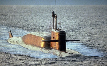 Soviet Typhoon Class submarine under way.